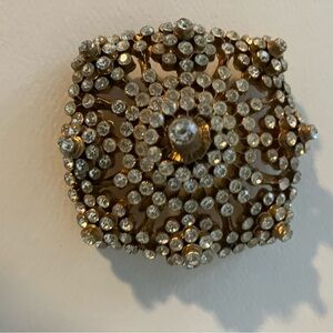 Antique Rhinestone Gold Tone Large Brooch Exquisite Sculptural Ornamental Pin Measuring 1.5” x 1.5” Showstopper with Multiple Ways to Wear! No Damage!