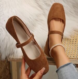 Super cute brown mary jane ballet flats, square toe, suede-feel, women's sz 6, NEW NO BOX