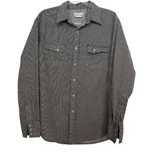 Wrangler Wrancher Mens Large Black White Geometric Pearl Snap Western Shirt L