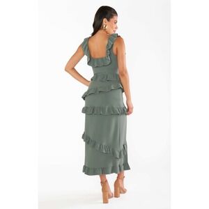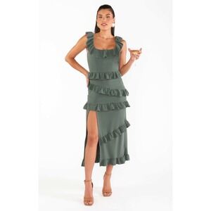 Show Me Your Mumu Sage Green Tiered Ruffle Maxi Dress Wedding Guest Slit Large