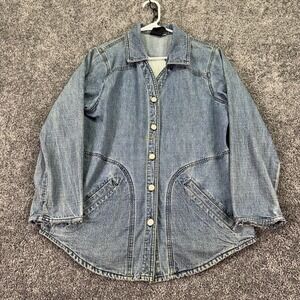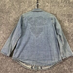 Produce Company Jacket Womens Medium Blue Denim Floral Long Sleeve Lightweight