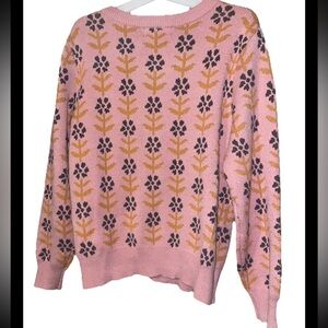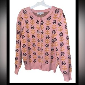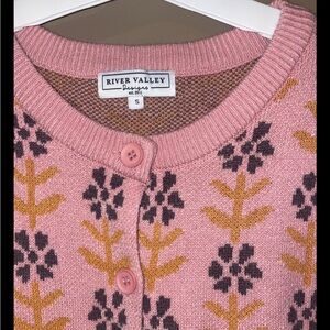 River Valley Designs Pink Floral Button Cardigan Sweater Crew Neck Women’s S
