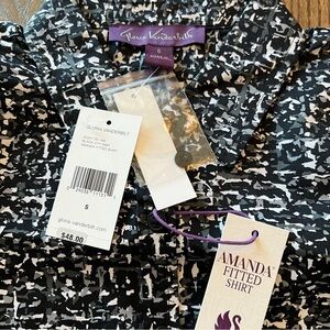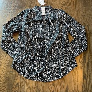 NWT Gloria Vanderbilt Amanda button up blouse black/grey/white size small