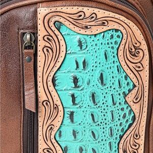 American Darling Brown and Teal Leather Backpack