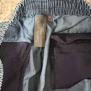 Sweaty Betty Jogger Pants Blue Pinstripes Elastic Waist Size M EUC
