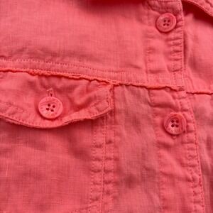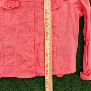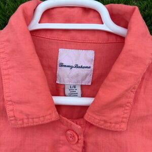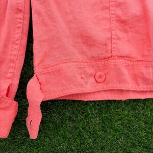 Tommy Bahama Women Coral Pink 100% Linen Button Up Trucker Jacket Size Large
