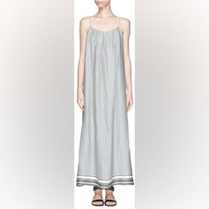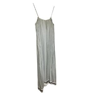 VINCE MAXI 100% SILK DRESS STAR PRINT BORDER CHARCOAL SPAGHETTI STRAP