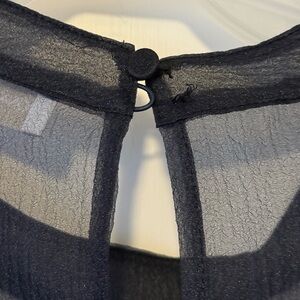 Elegant sheer blouse with ruffle sleeves. Perfect for evening wear.