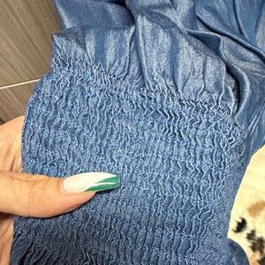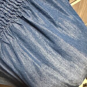 Elegant denim blue maxi skirt with smocked detailing. Flowy and versatile for any occasion.