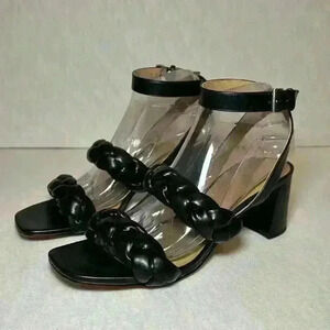 Crown & Ivy Black Blakely Puff Braided Block Heel with Buckle Closure Womens 8.5