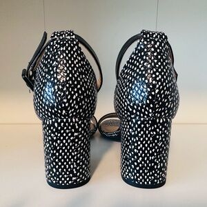 Step out in style with these chic black and white patterned sandals. Perfect for any occasion, these shoes offer both comfort and elegance.