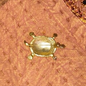 Elegant vintage green turtle brooch with gold accents. Perfect for adding a touch of nature to your outfit.