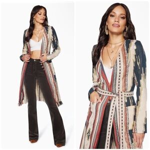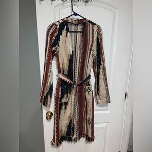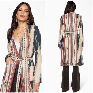 New! 🤠 Ramy Brook Cody Belted Fringe Jacquard Western Boho Cardigan/ Jacket 🤠 S