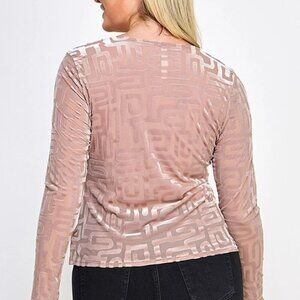 Plus size long sleeve top, featuring a burnout velvet design, by Haute Fox
