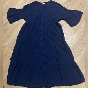 Pact Organic Cotton Gauzy Tiered Midi Dress Navy Blue XL Flutter Bell Sleeves