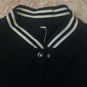 Discover timeless style with this black and white bomber jacket. Perfect for adding a touch of elegance to any outfit.