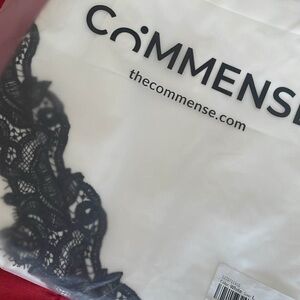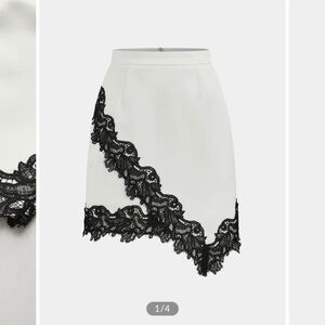 Commense Asymmetrical White Skirt with Black Lace