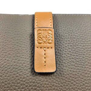 Loewe Compact Zip Wallet / Bifold Coin Wallet Taupe & Tan Anagram Strap - New