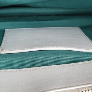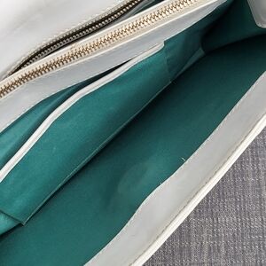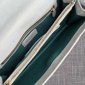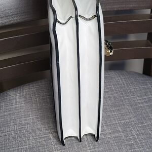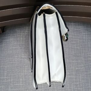 This stylish white handbag features a luxurious gold chain, perfect for any occasion. Its sleek design adds a touch of elegance to your outfit.