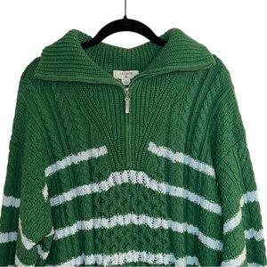 La Ligne x Target Quarter Zip Striped Cable Knit Sweater