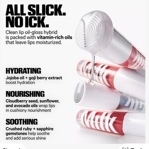 • Cushiony hybrid formula combines the hydration of an oil with the shine of a gloss