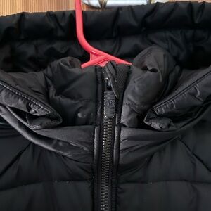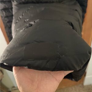 Lululemon long winter jacket. This is size 4, little too tight on me, I wear 4/6 lululemon's. There's patch on the back tail side, nothing major, I just patch it coz I didn't want to make the imperfection worse. Pls look at the photo. All zipper works.