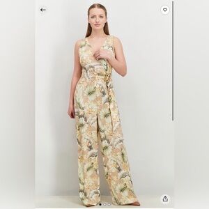 Embrace elegance with this floral print jumpsuit. Perfect for any occasion, it features a flattering fit and a stylish design. The cream and tan colors add a touch of sophistication.