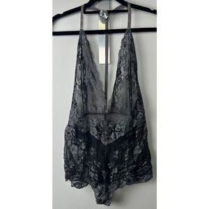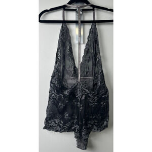 Intimately Free People Too Cute To Handle Black Gray Sheer Lace Bodysuit Sz M E7