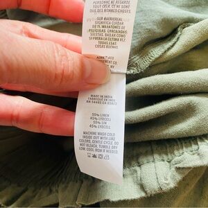 Linen blend olive green shorts with ruffle hem. NWT. Size medium