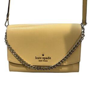 Kate Spade Carson Convertible Crossbody in Pale Yellow! In excellent used condition, clean exterior and interior. No callouts. It’s a pretty bag in person. Chain on outside can be put inside the bag.