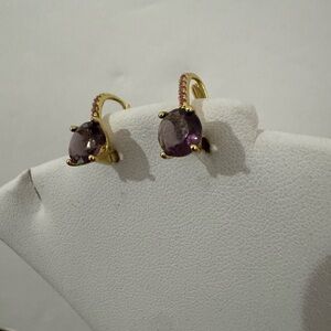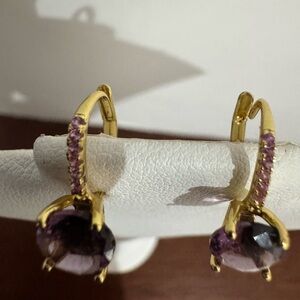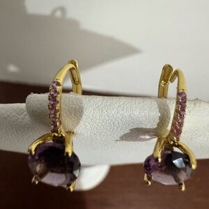 Pink tourmaline garnet gemstone drop style earrings gold filled