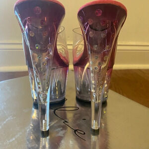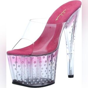 Ellie Shoes Clear Glitter Dot Platform High Heel Mules 7” Heels Pink Size 6 NEW