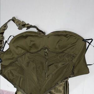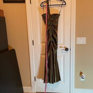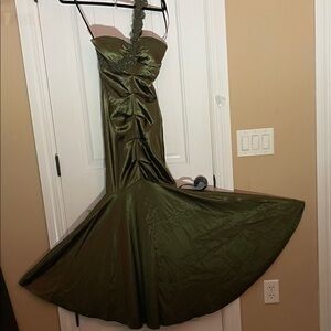 Xscape (4) Mermaid Elegant Long Green Dress wear with/without 1 Left Shoulder strap embellished