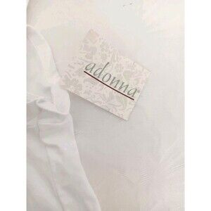 Brand new with tags. This vintage-style Adonna nightgown features a soft, breathable 100% cotton fabric in a crisp white. Beautifully detailed with pastel floral embroidery on the chest and delicate lace inserts. Smocked/pintuck bodice and button-front neckline. Short sleeves and a relaxed, flowy fit. Armpit to armpit 23in, length 48in, sleeves 6in.