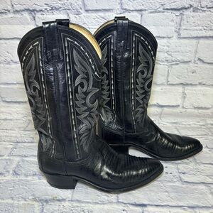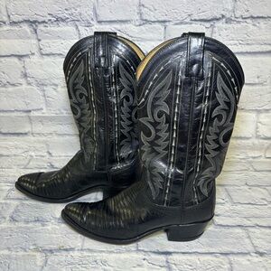 Dan Post Men's Exotic Black Lizard Western Cowboy boots size 8D 16830 Vintage