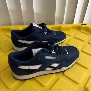 Dark blue Reebok shoes with white details. Comfortable and stylish for everyday use.