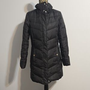 Chic black puffer coat by MICHAEL Michael Kors. Features quilted design and high collar. Ideal for cold weather. Good condition but missing the hood.