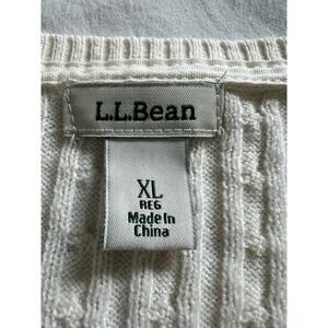 LL Bean Cable Sweater Button Up Size XL Cotton Merino Wool Off White Womens