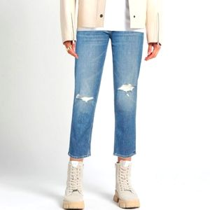 MOTHER The Tomcat Distressed Straight Leg Cropped Jeans Size 30 Mid Wash…