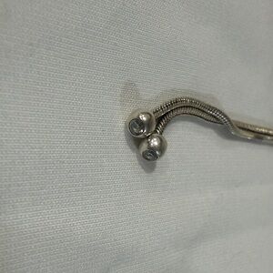 Stylish silver bracelet with adjustable design. Features sleek, modern look. Ideal for any occasion.