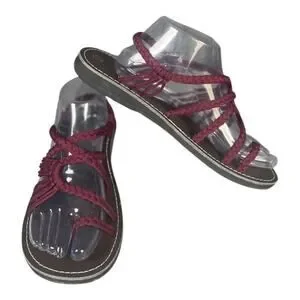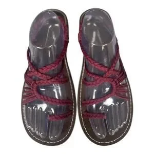 Plaka Women’s Palm Leaf Burgundy Boho Flat Strap Sandals Size-10