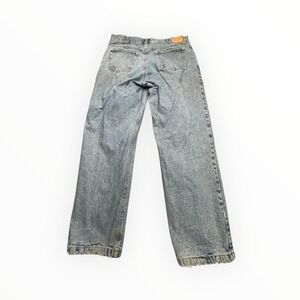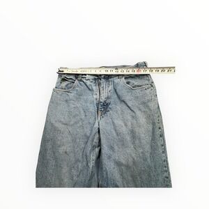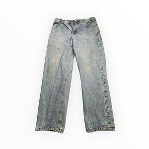 Cabelas Mens Flannel Lined Denim Jeans Light Wash Blue Plaid Lining 36x30