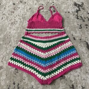 MC2 Saint Barth Multi Color Crochet Top and Shorts Size M/L
