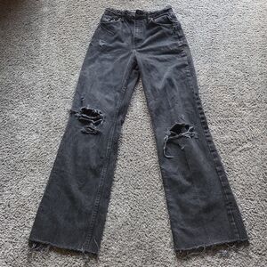Zara Black Distressed Flare Jeans