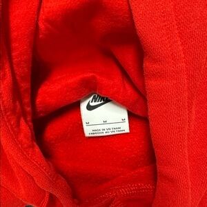 Vibrant red Nike hoodie with Georgia lettering. Features bold sleeve graphic and classic design.