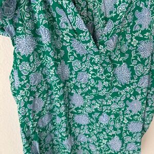 Sonoma Goods For Life Womens XXL Green Blue Floral Flutter Sleeve V-Neck Blouse