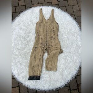 Free People High Roller Overalls – Khaki Utility Jumpsuit - Small