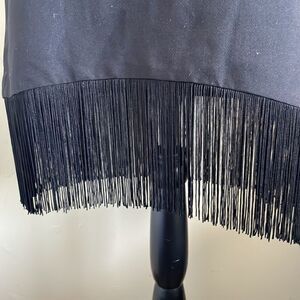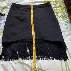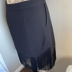 EUC! Fun and flirty black mini skirt with pockets and fringe/tassels on the bottom. Zips up the side. Nice quality material, well-made piece to add to your closet!
