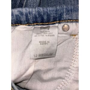 The Levi's Women's Size 12 Medium Relaxed Boot Cut 550 Stretch Jeans are a versatile and comfortable option for women's everyday wear. Made with a blend of spandex and cotton denim, these jeans offer a relaxed fit with a boot cut style. The classic blue color and solid pattern make them a timeless wardrobe staple. Featuring a zip closure, 5-pocket design, and Levi's logo accents, these jeans are perfect for all seasons and can be styled in various ways to suit any occasion. The waist is 32in and a 30 in inseam.