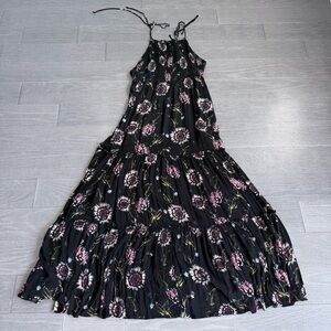 Free People Garden Party Floral Maxi Dress L Boho Smocked Tiered A-Line Romantic